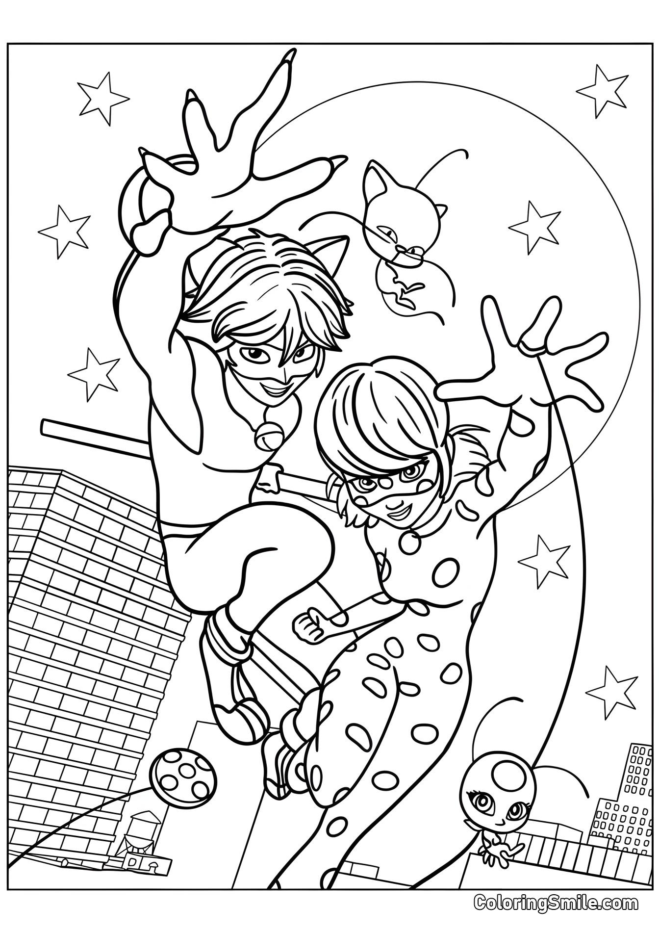 Ale hlavní postavy se nehodlají jen tak posadit a sledovat útok akumatizovaných motýlů – jsou připraveny ho zastavit. Kdykoli je město v nebezpečí, obě postavy skáčou do akce. Čelí mnoha nebezpečím, ale také se objevují romantické scény. Proto omalovánky s Mariétou a Cat Noir zahrnují také tyto okamžiky. Mariéta si neuvědomuje, že Cat Noir je její spolužák a odmítá chlapcovy námluvy. Mezitím je Adrian okouzlen svou partnerkou, ale Mariéta, tichá dívka, si ho nevšímá.